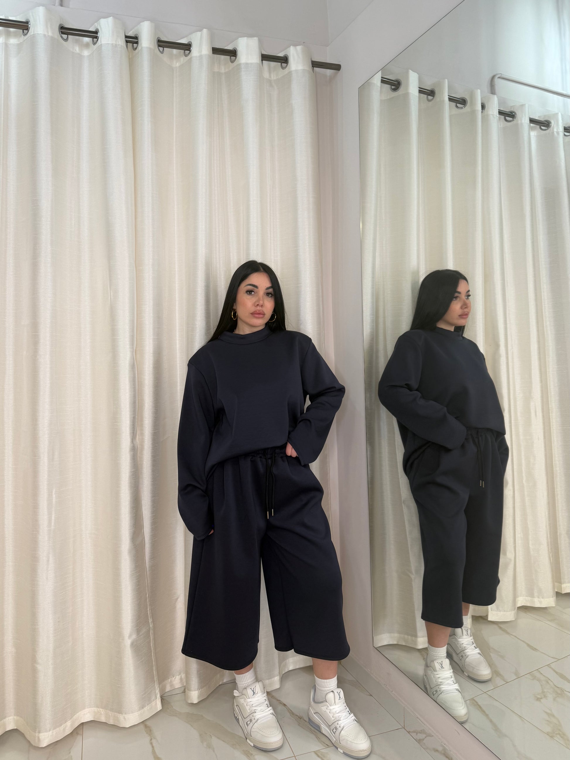 Coordinato composto da bermuda con elastico in vita e felpa con spalline e mezzo collo, veste da xs a XL