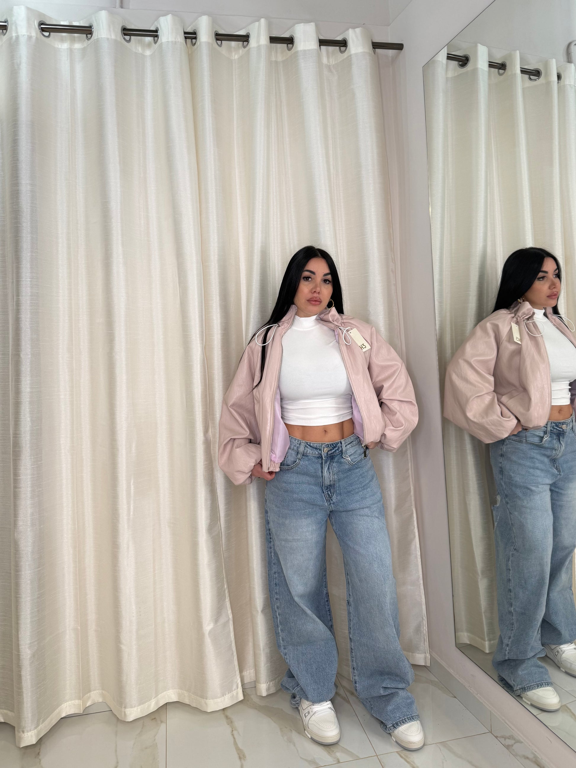 Jeans tela elastica per un effetto più morbido la modella indossa taglia S